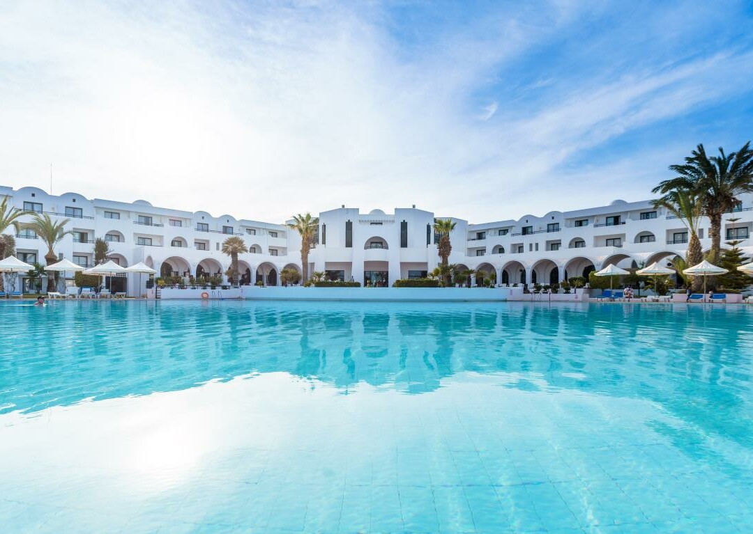 Hotel se nalazi na dugoj pješčanoj plaži, 6 km od turističkog mjesta Midoun. Vrijeme autobusnog transfera od zračne luke Djerba do hotela: oko 40 minuta