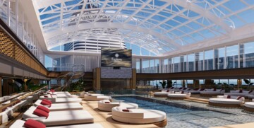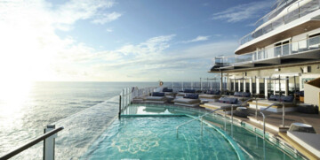 Kako bi se doživjelo „Ocean State of Mind“, element vode nalazi se u središtu dizajna. Vanjski prostori obuhvaćaju više od 6.250 m² s impresivnim pogledima na more, brojnim jacuzzijima duž promenade, trima vanjskim bazenima (uključujući jedan samo za odrasle), 64 kabane te unutarnjim bazenom od 1.200 m² s pomičnim staklenim krovom – jedinstvenim u industriji.