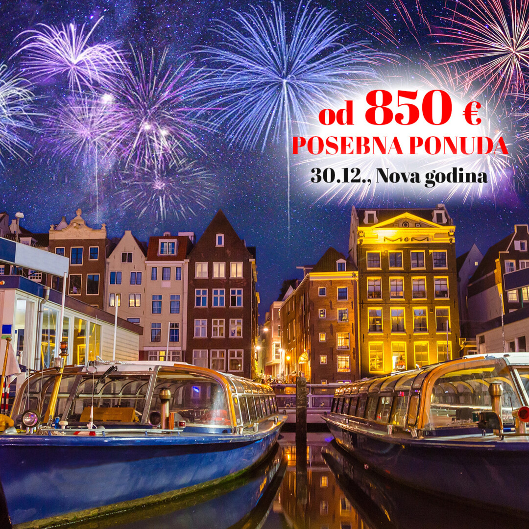 Doručak. Predlažemo odlazak autobusom na poludnevni izlet prema sjeveru Nizozemske do Zaanse Schanse – tradicionalnog sela i muzeja na otvorenom, gdje se nalaze najljepši primjerci vjetrenjača u Nizozemskoj. Posjetit ćemo manufakturu klompi – tradicionalni nizozemski proizvod te tradicionalnu nizozemsku siranu, gdje ćete imati priliku degustirati i kupiti sir. Slijedi posjet prekrasnom ribarskom selu Volendam. Slobodno vrijeme za uživanje u kafićima ili malim restoranima uz more i kupovinu suvenira. Povratak u Amsterdam. Odlazak do poznate brusionice dijamanata Coster Diamonds uz mogućnost kupovine nakita po tvorničkim cijenama. U nastavku preporučujemo nezaboravnu vožnju amsterdamskim kanalima kroz koju ćete upoznati Amsterdam iz sasvim drugačije perspektive (uz doplatu). Slobodan ostatak dana u Amsterdamu za šetnju, kupovinu ili uživanje u kavici na jednoj od amsterdamskih terasa uz kanale te pripremu za najluđu noć u godini. Doček Nove Godine u individualnom aranžmanu. Noćenje.
