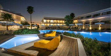 Hotelski sadržaji: dobro održavan dvokatni hotel, potpuno renoviran 2019. godine, ukupno 150 soba; restoran, dva bara; bazen s odvojenim dijelom za djecu; lift, bežični internet; parkiralište dostupno (ovisno o raspoloživosti).