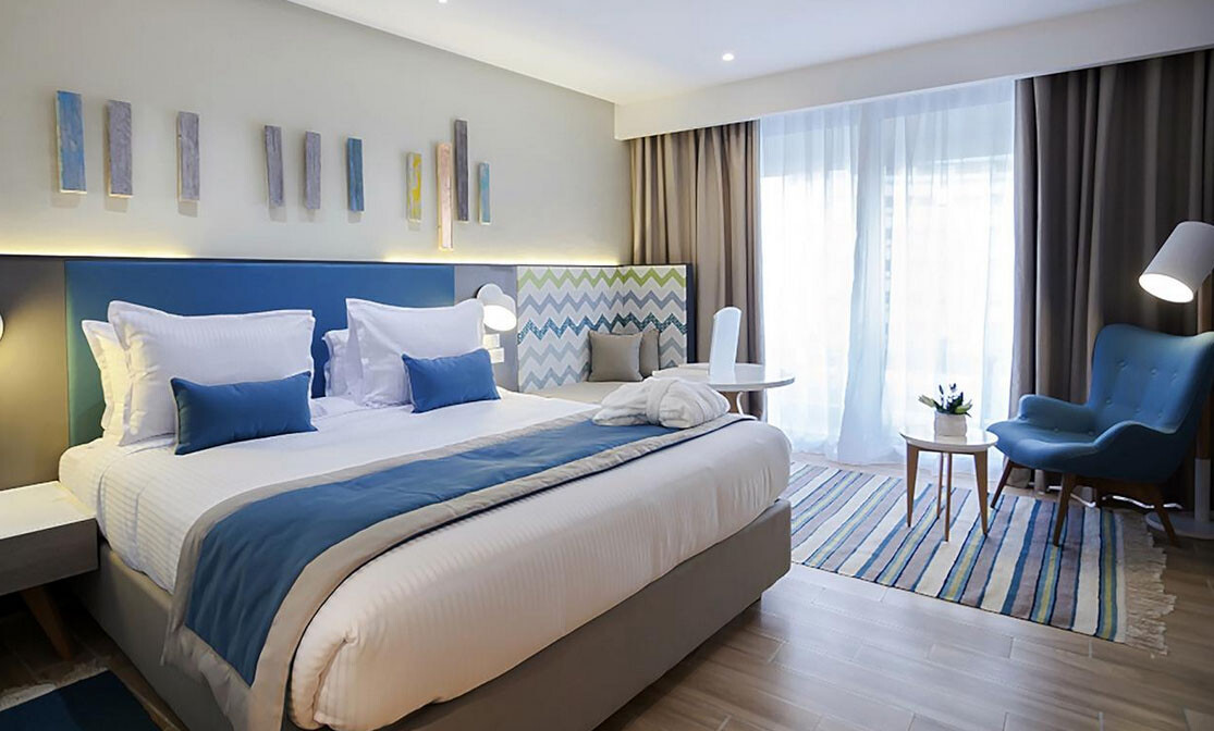 Hotel ima 222 sobe. Sve sobe su klimatizirane, imaju balkon ili terasu s pogledom na more ili grad, kupaonicu (kada ili tuš, wc, sušilo za kosu), sef, mini bar, satelitsku TV, telefon. Pojedine sobe su prilagođene osobama s invaliditetom.