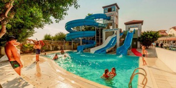 Hotelski sadržaji: hotelski kompleks s glavnom zgradom na četiri kata i 4 zgrade, zadnji put djelomično renoviran 2022. godine; ukupno 343 sobe (prilagođene i osobama s invaliditetom), restorani (glavni; turski, talijanski i s plodovima mora "a-la-carte"), snack bar, bar; četiri bazena, dječji bazen, vodeni park; lift, bežični internet, trgovine, knjižnica, parking (ovisno o raspoloživosti).