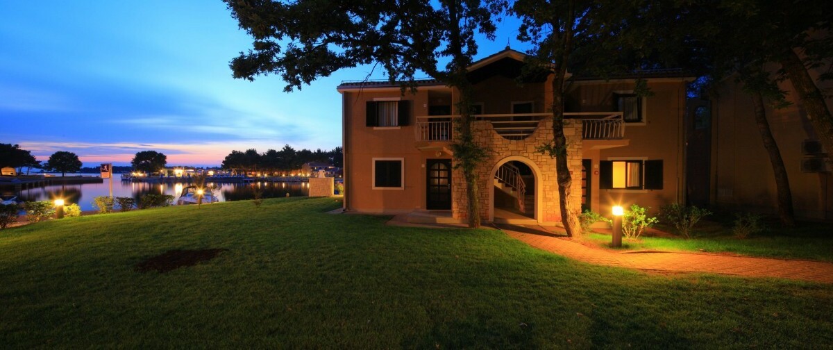 SADRŽAJI U NASELJU: a la carte restorani, bife restoran, pizzeria, caffe barovi, bankomat, trgovine, supermarket, ambulanta, 1 bazen za odrasle i 1 za djecu; marina za brodice, Wi-Fi uz doplatu. Parkiralište uz doplatu cca. 8 kn na dan.