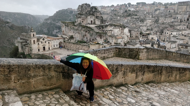 Redali su se tako gradovi, Alek, daj ne trči, triba napravit lipi selfie za nagradu, i onda vidiš ono, pa ovo, ajme koja lipa rozeta, poslin ću selfie.. Još samo ovo, i vrime proleti, već si u busu. Matera, tamo ću ja okinit jedan selfie, i onda, opet ta dosadna kiša, ali, kad uđeš u to čarobno, neobično misto ni kiša ne skida osmjeh s lica. Aj Sandra, sad ti mene, evo i Jasne, sad bi malo iz ovog kuta, pa iz onog kuta, s ovim mobitelom, čekaj jednu s foto, e i ja bi još jednu s tabletom...na kraju nemaš pojma šta držiš i čije u ruci...