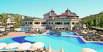 Lokacija: Uz vlastitu pješčano kamenitu plažu, otprilike 1 km od mjestašca Bogazkent, 11 km od Beleka (taksi, minibus), 40 km od zračne luke Antalya i 50 m od autobusne stanice, u blizini golf igrališta.