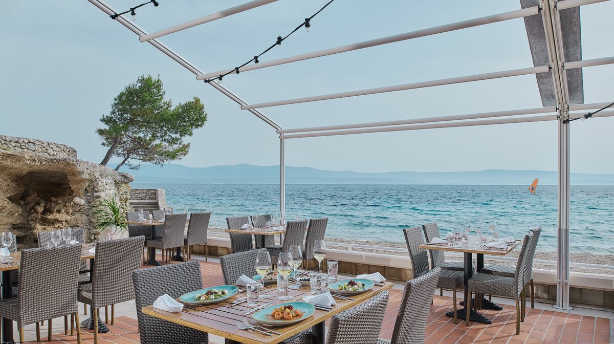 SOBE: moderno i komforno uređene, kupaonica (tuš/ WC), sušilo za kosu, sef, telefon, Internet priključak, SAT TV, mini ba, kuhalo za vodu. Sve sobe su klimatizirane. Neke sobe su okrenute prema moru. Većina s balkonom. Pomoćni krevet moguć je jedino u superior sobama. Novo u 2022.g.: renovirane sve sobe