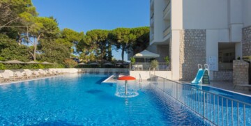 SADRŽAJI: 208 soba, restoran, aperitiv bar, terasa, besplatni internet Wi-Fi u lobbyu hotela, wellness & beauty centar - saune uz doplatu, kongresna dvorana, unutarnji bazen (neće biti u funkciji), dva vanjska bazena, jedan s odijeljenim dijelom za djecu, a drugi s aquagun-om; fitness, suvenirnica, parking uz nadoplatu.
