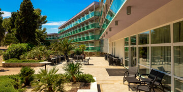 Wellness: WELLNESS AURA BOTANICAL SPA GARDEN (1500 m2) - unutarnji bazen s grijanom morskom vodom i hidromasažom, vanjski bazen s morskom vodom i sunčalištem, sauna - turska, finska, bio sauna, rimska, fitness centar u izdvojenom objektu pored hotela s predivnim pogledom na more i bazene, relax sobe, recepcija, beauty zone - masaže, njega lica i tijela, pedikura, manikura, solarij, prostorije s aqua spa krevetom te masažnom kadom