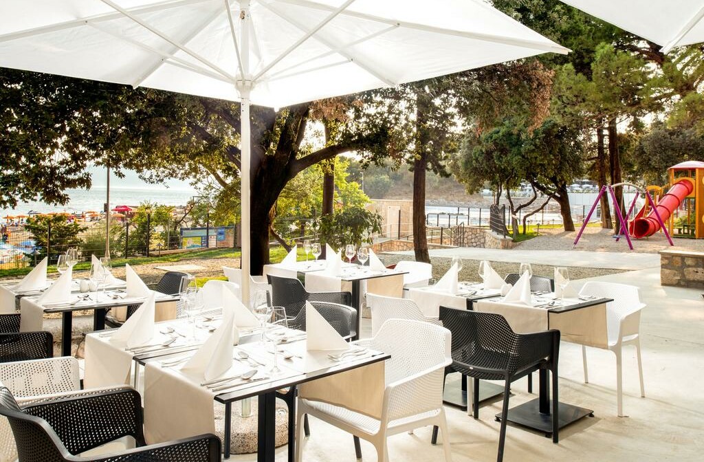 SADRŽAJI: recepcija, bar and lounge, restoran, dječji buffet, terasa, konferencijska dvorana, Spa : fitnska sauna, hladni bazen, tuševi, kanta za led, masaže (uz naplatu), tri vanjska bazena, uključujući 2 dječji bazen (bio-design), baby bazeni sa sjenom, dva unutarnja bazena