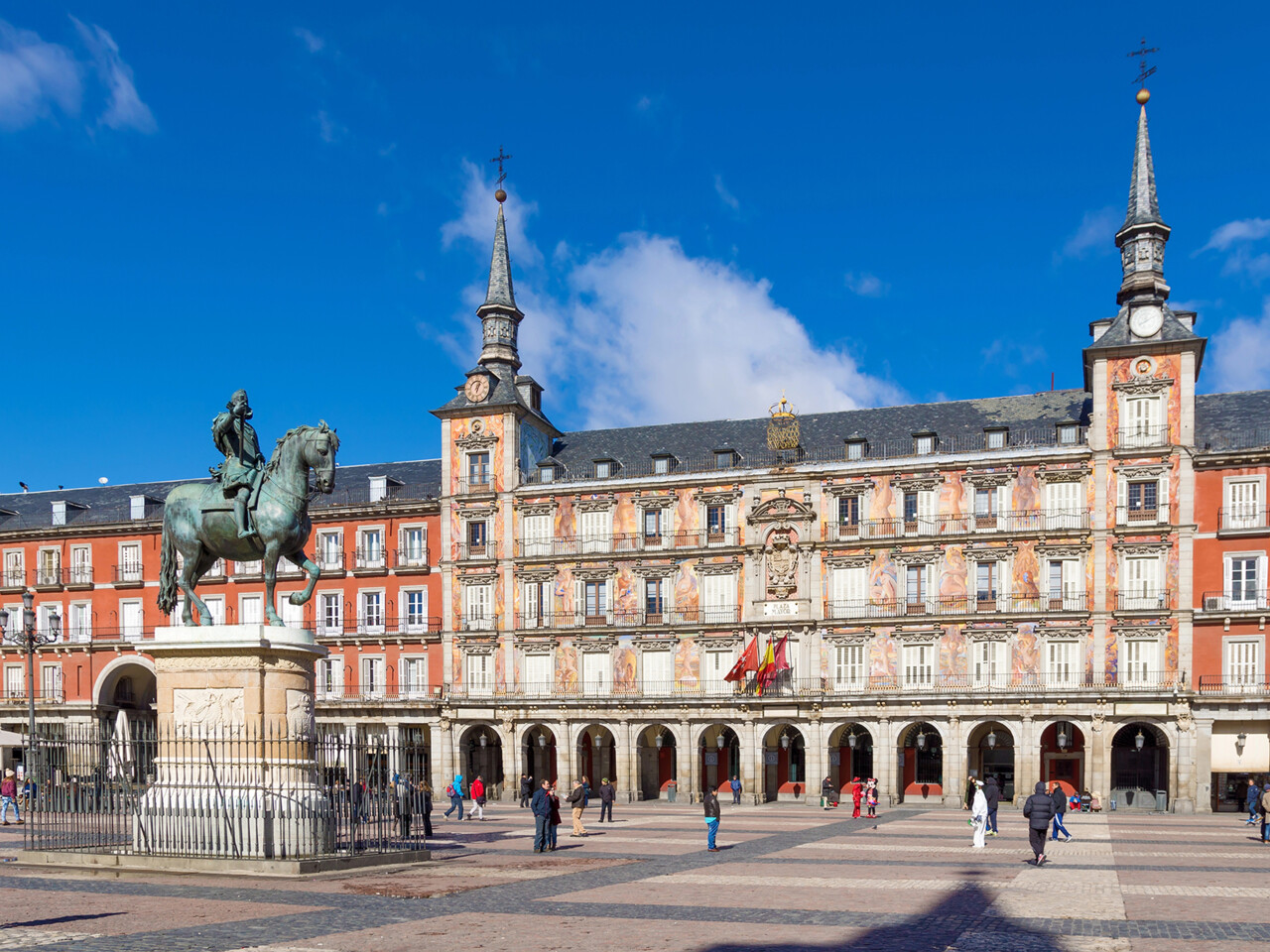 Sastanak putnika u Zračnoj luci Franjo Tuđman Zagreb dva sata prije polaska zrakoplova. Prijava na let zrakoplovom kompanije Croatia Airlines za Madrid na liniji OU372 u 07:40. Po dolasku u 10:20, nakon obavljanja carinskih formalnosti transfer do hotela i smještaj. Nakon kraćeg odmora javnim prijevozom stižemo do žile kucavice Španjolske prijestolnice - Gran Vie te se prošetati do dva glavna gradska trga: Puerta del Sol i Plaza Mayor. Vibrantni, živopisni trgovi su okruženi uličicama prepunih restorana, tapas barova, šarmantnih terasa gdje možete pojesti neki od tipičnih španjolskih specijaliteta, a s obzirom da je Madrid grad s najviše restorana i barova po glavi stanovnika, sigurni smo da ćete pronaći nešto za sebe. Svakako predlažemo posjet Mercadu de San Miguel, gdje tapasi i svježe namirnice mirisima mame prolaznike. U dogovoreno vrijeme sastanak sa vodičem te zajednički povratak grupe u hotel. Noćenje.
