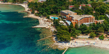 SADRŽAJI: recepcija, 217 soba, obnovljen i klimatiziran hotel; restoran, a la carte restoran, aperitiv bar i snack bar uz bazen, bar na plaži, Wellness centar, frizerski salon, ležaljke i suncobrani uz bazen besplatno (ograničena količina), a na plaži uz doplatu, dvorane za sastanke, Parkiralište uz doplatu cca. 1 Eur na dan.