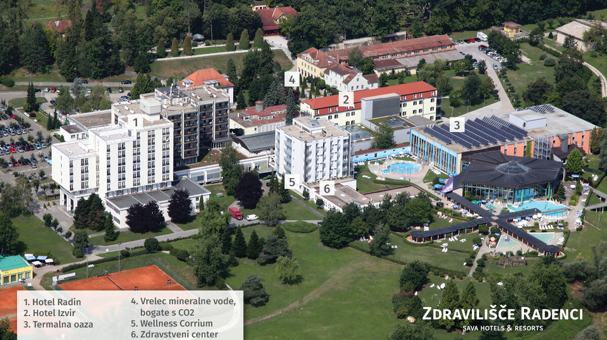 Hotelski kompleks povezan je s bazenskim kompleksom i medicinskim i wellness centrom Corrium (sve pod jednim krovom)