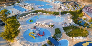SPORT I ZABAVA: teniski centar s 16 igrališta, konjički centar, odbojka na pijesku, igrališta za košarku, nogomet, mali nogomet, rukomet, odbojku, boćalište, minigolf, stolni tenis, pikado, najam bicikala, ležaljki i suncobrana; sportska animacija u moru i na tlu; dnevna i večernja animacija, škola tenisa, plivanja, jahanja i ronjenja, ronilački centar. Bazen s 1400 m2 vodene površine (veliki grijani bazen površine 970 m2 sa slatkom vodom te manji grijani bazen 340 m2 sa slatkom vodom, vodenim efektima i toboganom), biciklističke staze, trim staza.